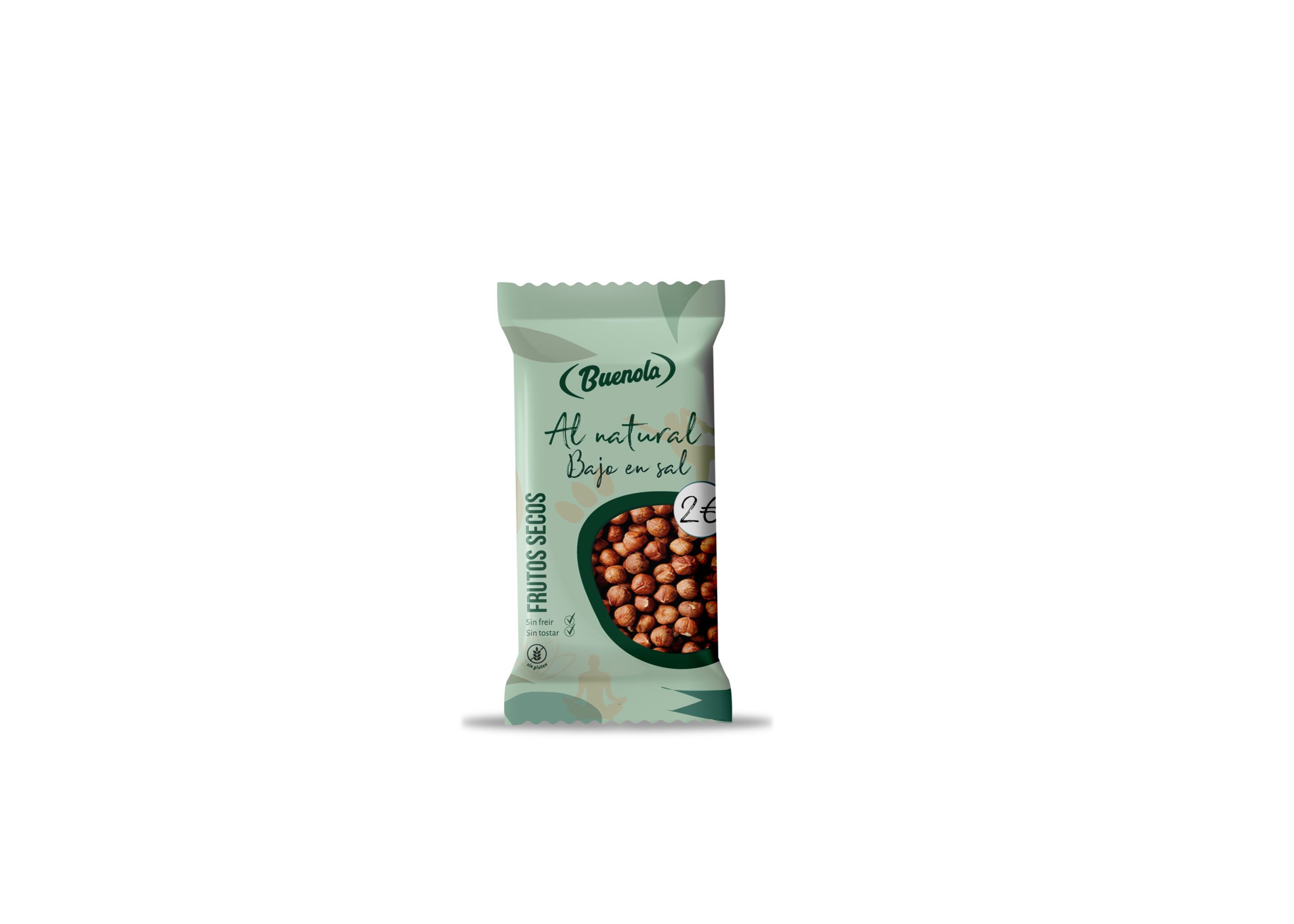 Buenola Al Natural Bajo en sal se presenta en bolsitas de distinto gramaje a un precio marcado de venta al público de 2 €. Se sirven en cajas expositoras de 8 unidades. También se puede optar por elegir un precioso expositor metálico Buenola Al Natural con cinco ganchos para situar en mostrador o punto caliente del establecimiento ya que estas bolsitas van troqueladas.