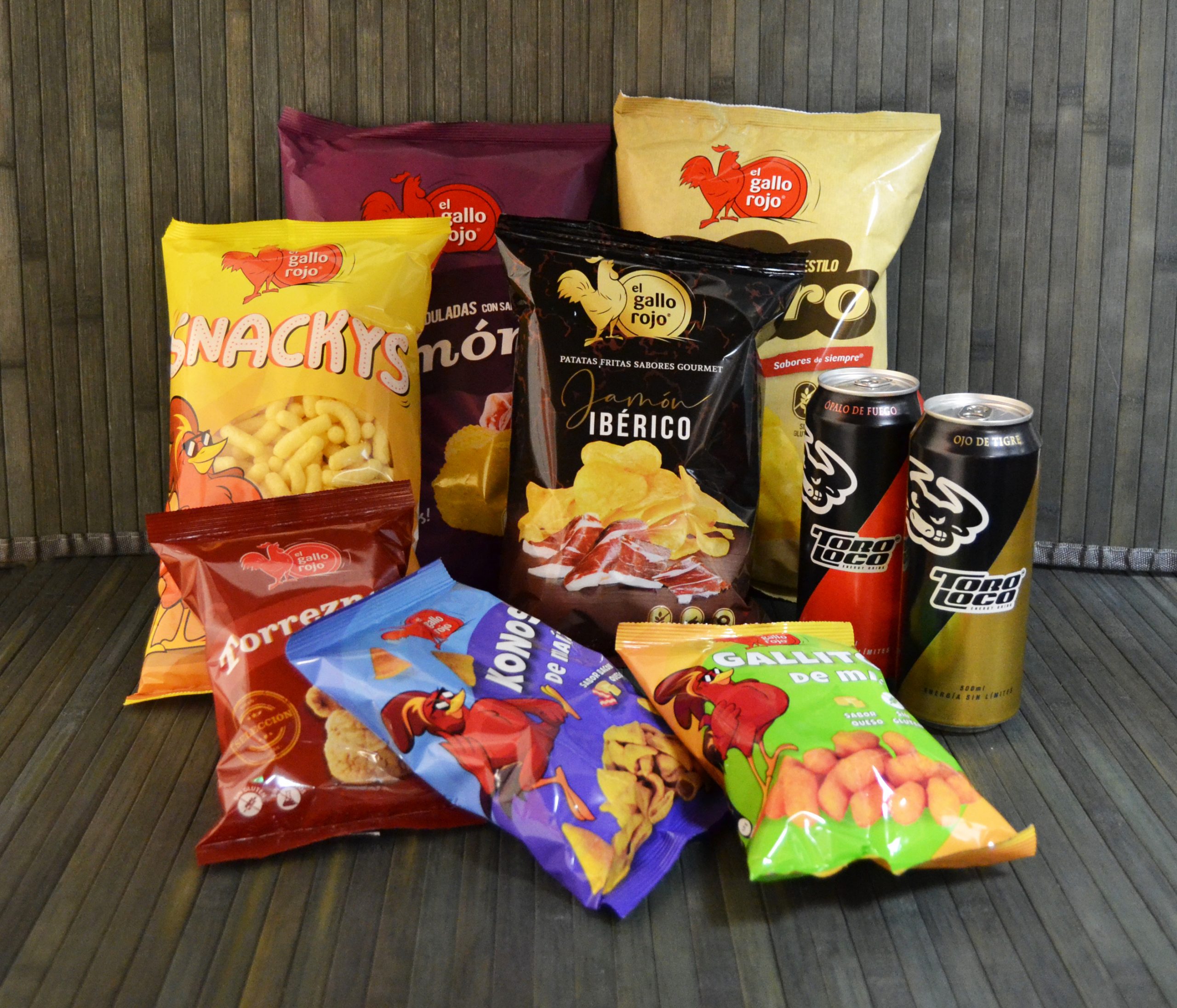 - Lote de productos El Gallo Rojo: Llévate diferentes patatas con diversos sabores, snacks, torreznos, bebidas energéticas, … Descubre el premio.