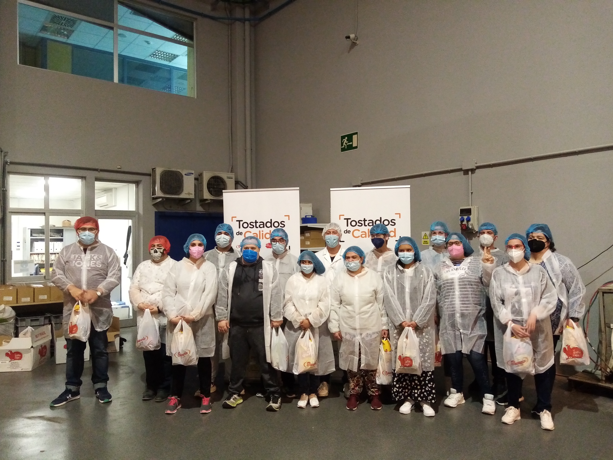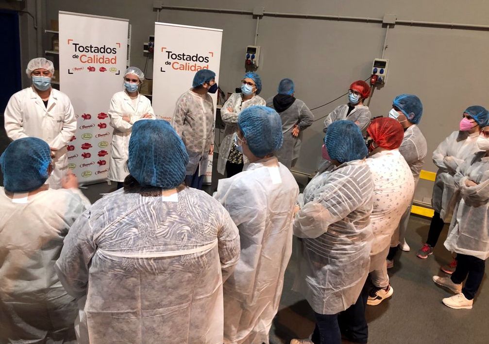 Recibimos la visita de los alumnos del Programa para la Inserción y la empleabilidad y los del programa «Empresa Simulada» de la Fundación Down Zaragoza. Respetando todas las medidas de seguridad y protocolos Covid visitaron nuestra planta de producción de frutos secos en Zaragoza, conociendo de primera mano todos los procesos de producción. Estuvieron muy interesados en cómo realizamos  las elaboraciones de frutos secos haciéndonos muchas preguntas. Agradecemos a sus monitoras, Vanessa y Lourdes haber pensado en Tostados de Calidad para realizar esta visita y esperamos que los chicos y chicas de esta organización se llevaran un buen sabor de boca. Al menos con la sorpresa que les preparamos al final.